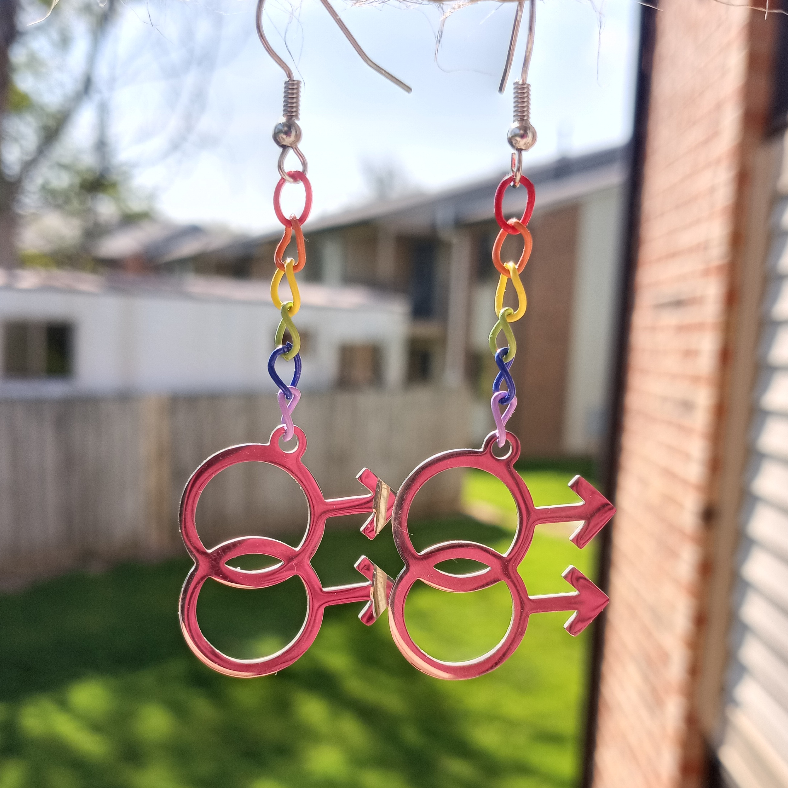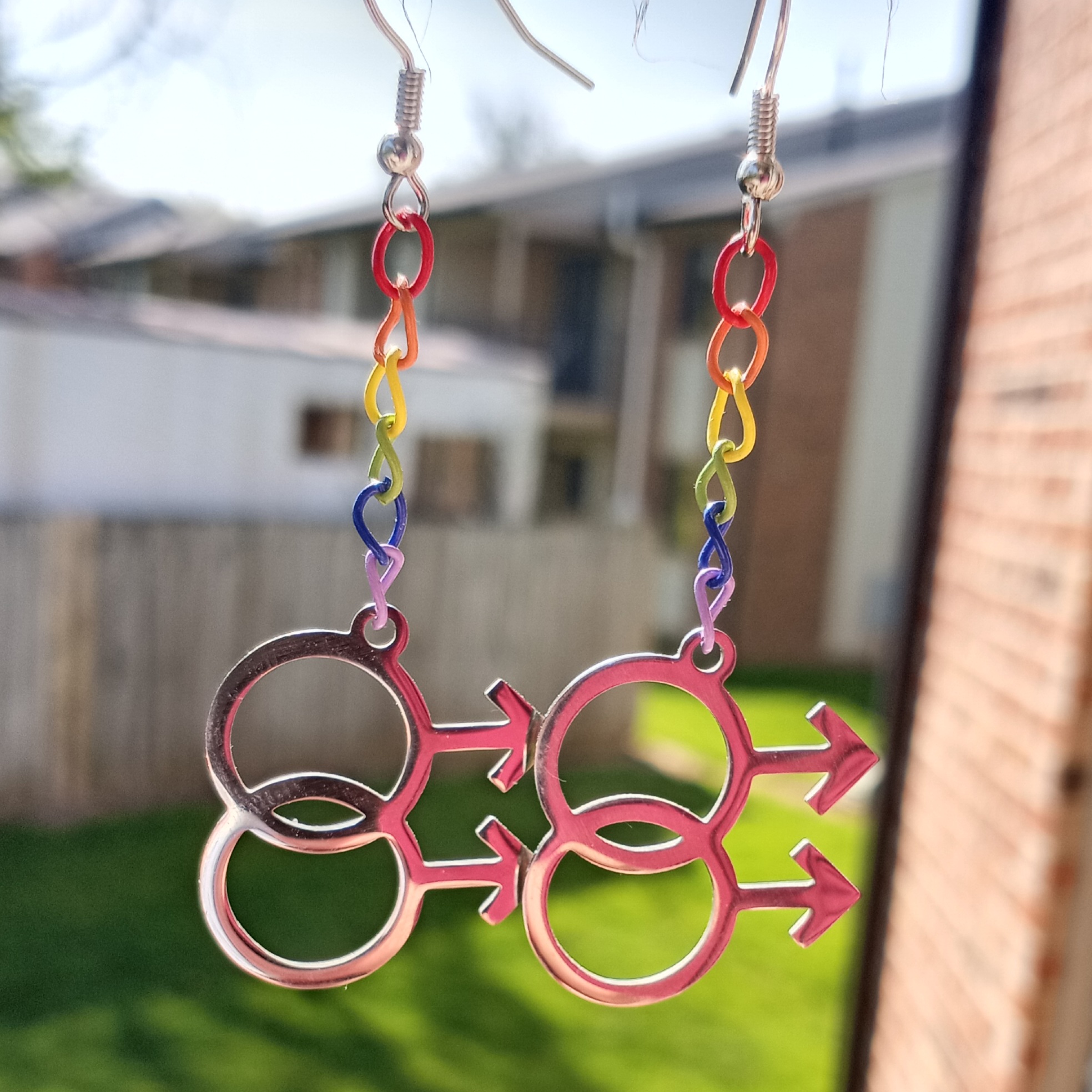 earrings with rainbow chain and the gay symbol