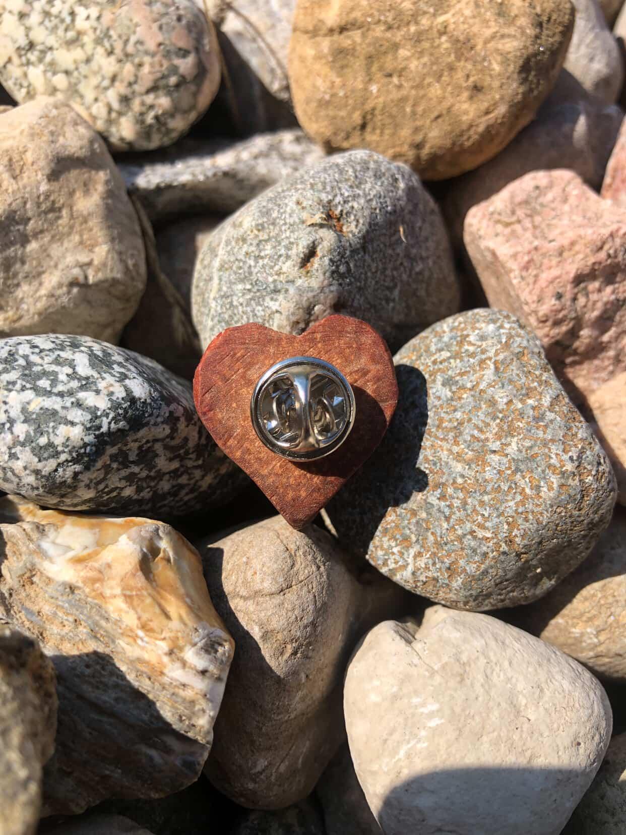 carved avocado pit pin with the axis bone of a 13-lined ground squirrel
